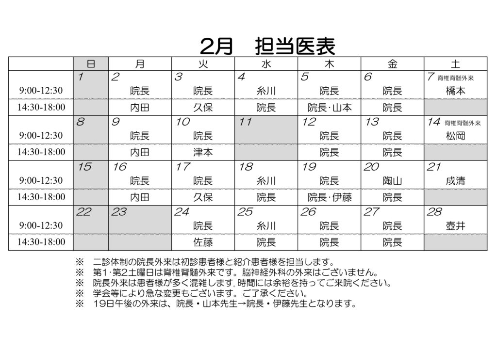 2~3月の担当医表