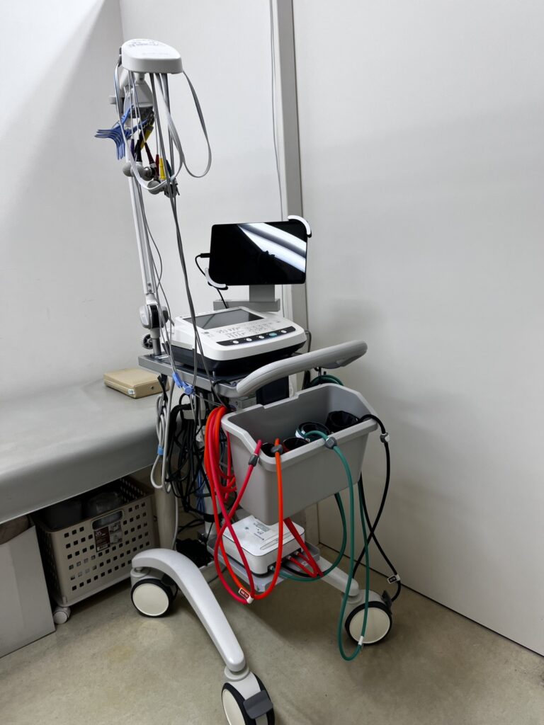 | 検査方法 | ベッドに仰向けになり、両手足と胸に電極を装着して検査を行う。 |